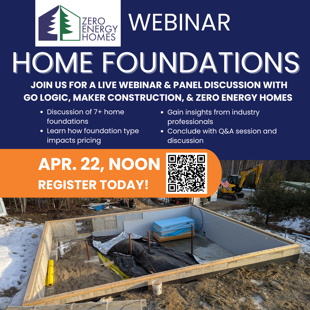 Curious about home foundation types suitable for Maine homebuilding? Home foundations are a significant cost driver when building a new home, and each foundation type has its pros and cons. Explore the features and performance of 7+ foundation types during a moderated panel discussion with industry professionals including Alan Gibson, Principal of GO Logic; Ryan MacEachern, Owner of Maker Construction; and our very own Steve Eaton, Vice President of Operations for Zero Energy Homes.